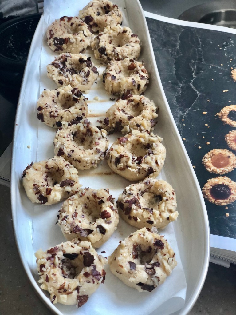 - ☀️Hamuru sıktığında biraraya gelecek. Minik minik toplar yap elinle. Yumurta beyazına batır, fındık parçalarına bula ve bir kaba diz. Ortasına parmağınla basıp, minik bir çukur oluştur.